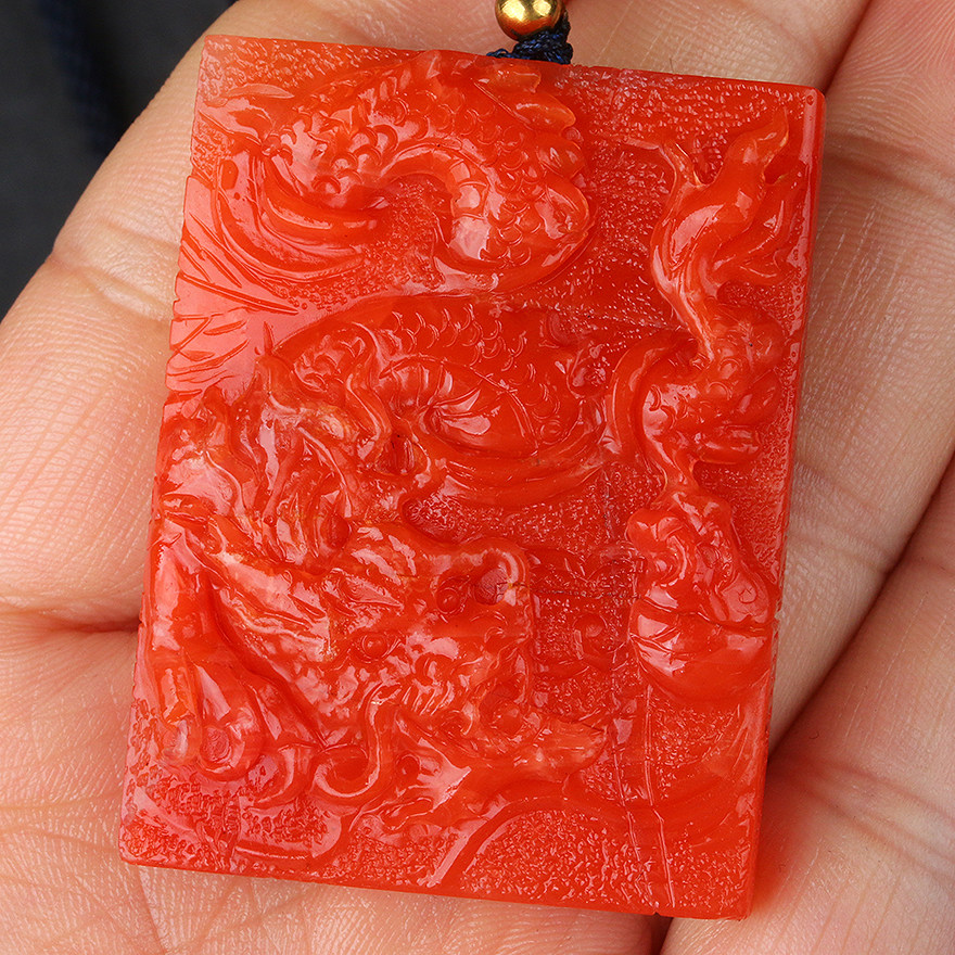 40 83 gr Po Mountain stock-Finely Carved Dragon All Over The World] Full Of Tomatoes Red South Red Agate Pendant Pendant Pendant