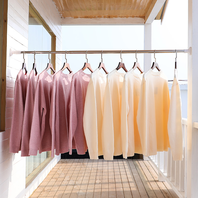 Clothes hanger on the wall hanging clothes artifact wall clothes telescopic rod punch-free clothes hanging rod stainless steel top