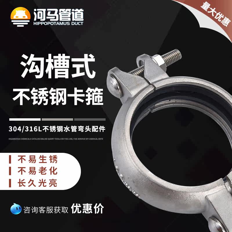 304 stainless steel groove clamp copy forest fire pipe hoop 316 hoop industrial engineering water supply and drainage pipe connector