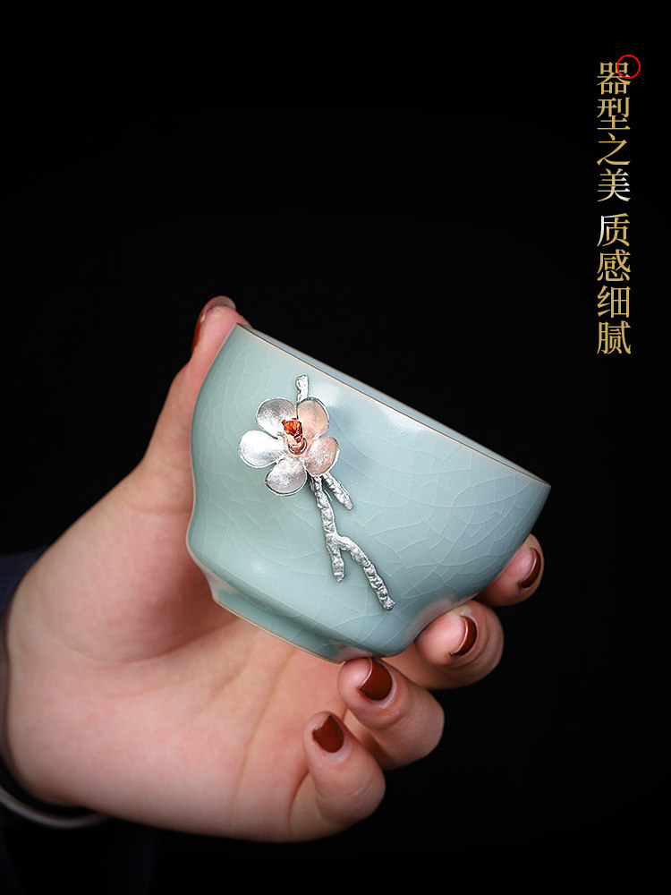 Kung Fu tea master cup single cup large antique tea set single men and women Tianqing Ru kiln open piece pure handmade tea cup