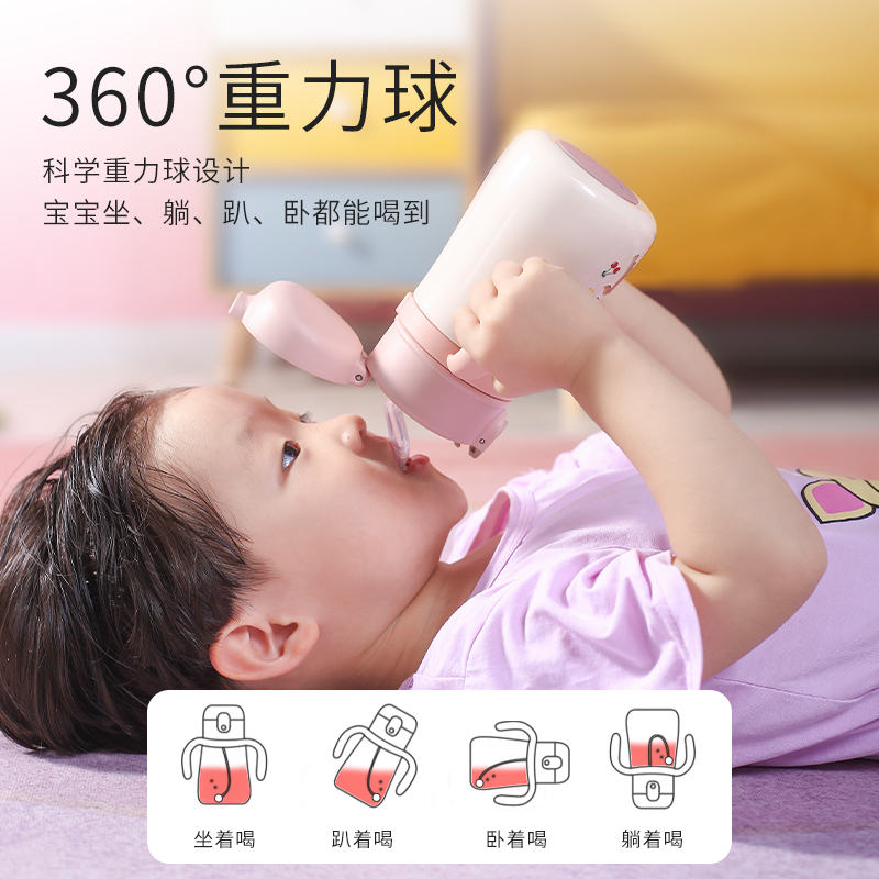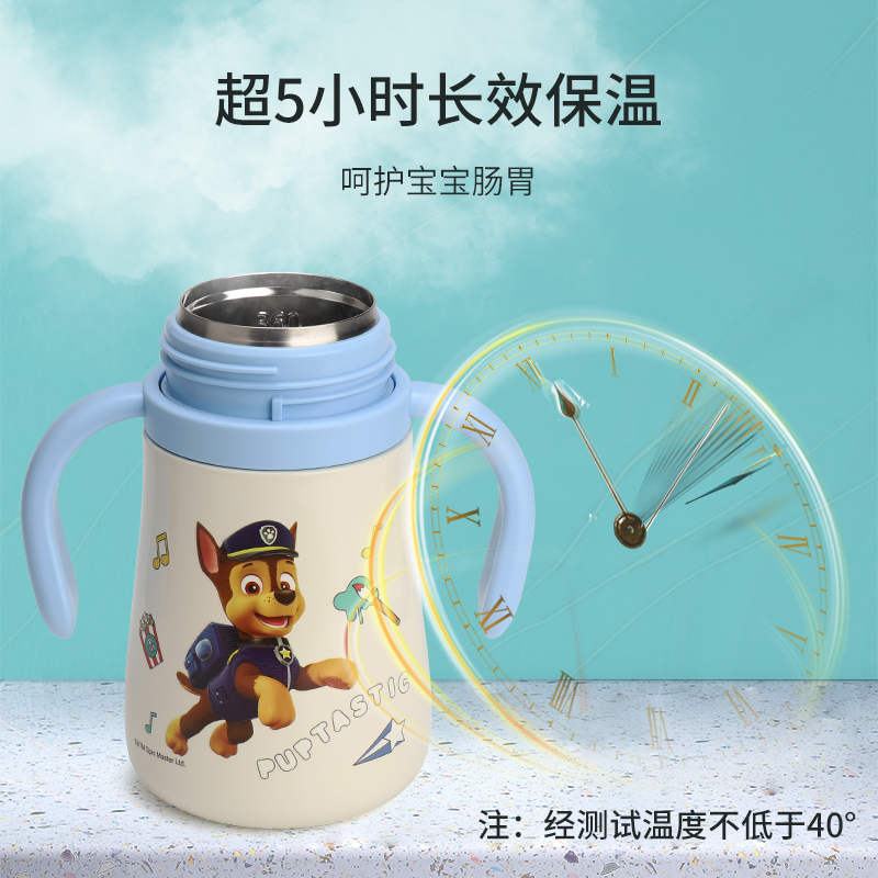 Wang Wang's team with great power Wang Wang insulated cup 316 stainless steel children's water glass straw anti-fall with handle baby cup