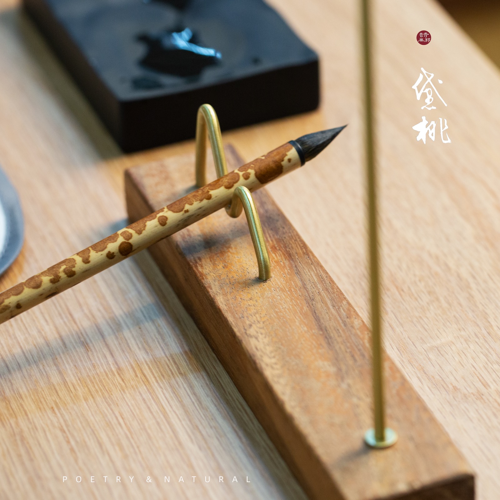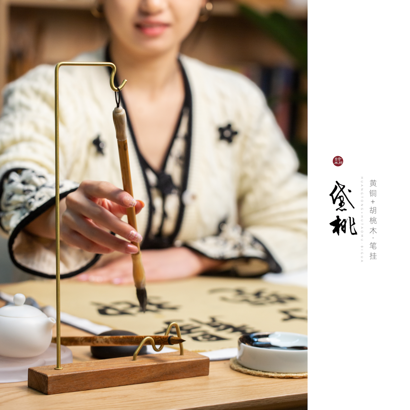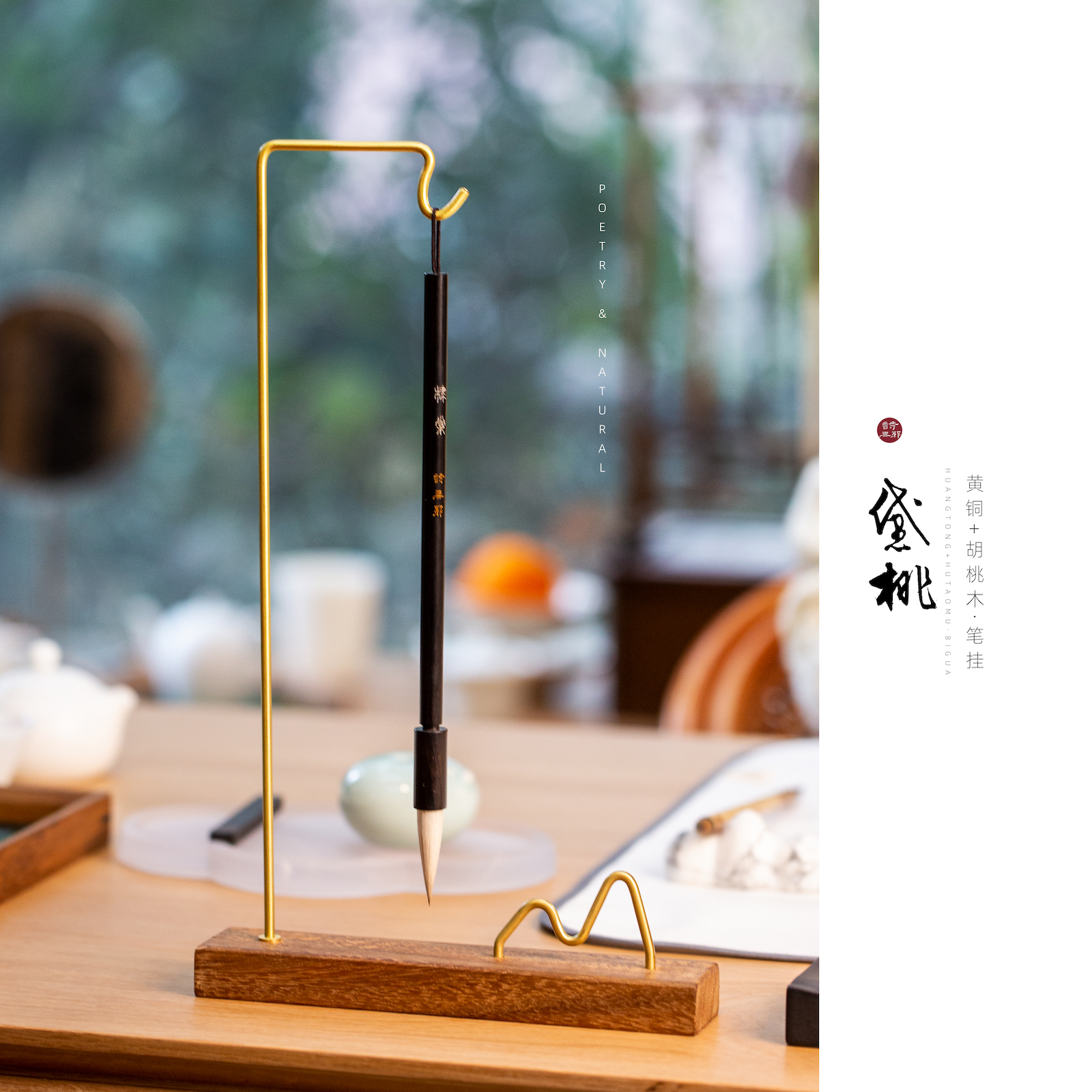 (Dai Peach) Walnut brass high-grade pen hanging brush pen holder pen shelf simple creative storage poetry innocent classroom