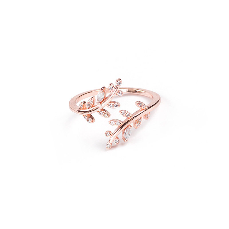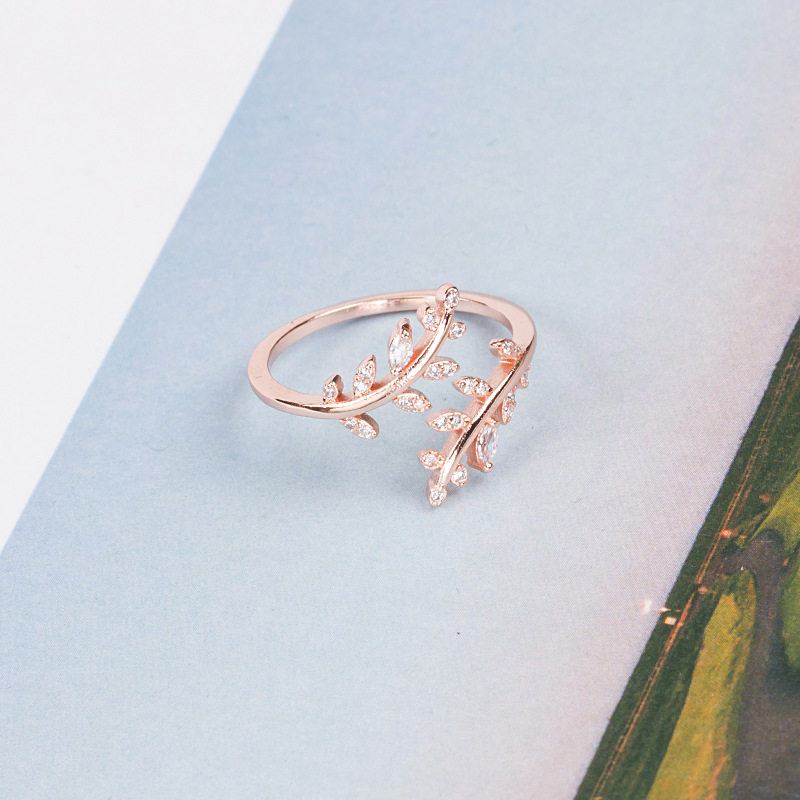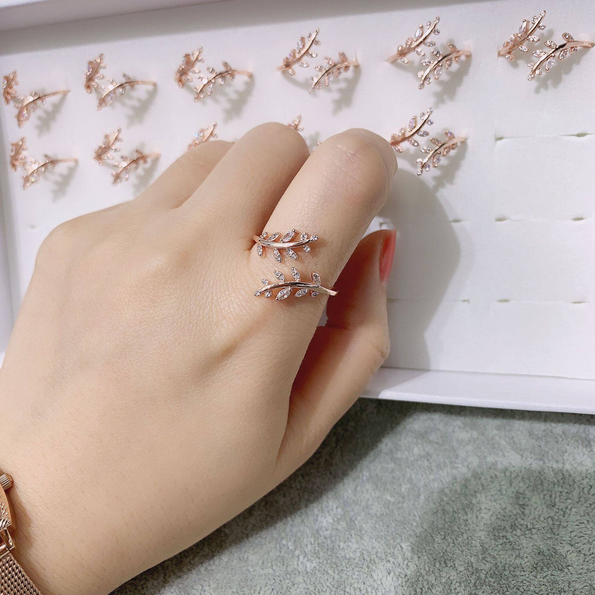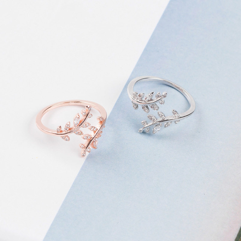 Han edition Xiaoqing fresh drilling leaves open ring fashion temperament and cold air minimal adjustable ring z
