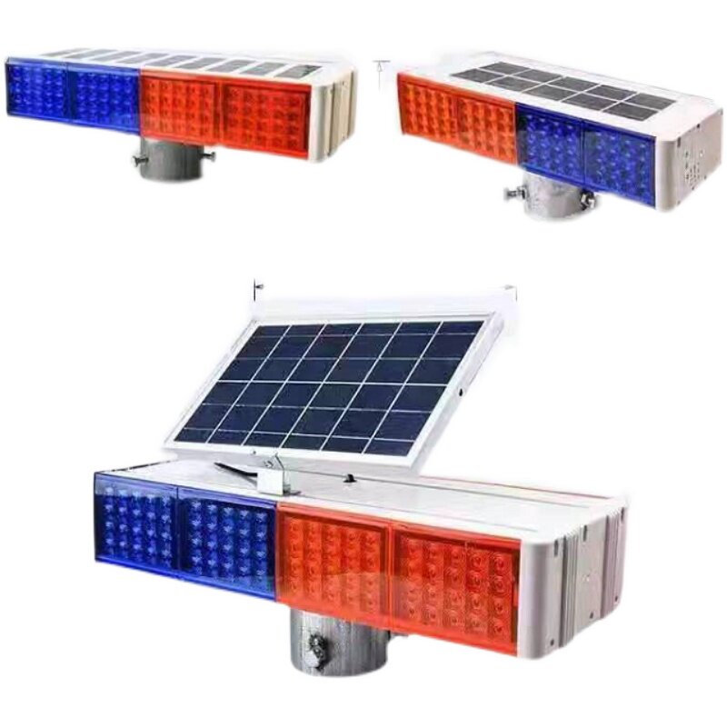 Solar flashing lights road construction LED lights red and blue four lights double-sided warning lights signal lights traffic flashing lights