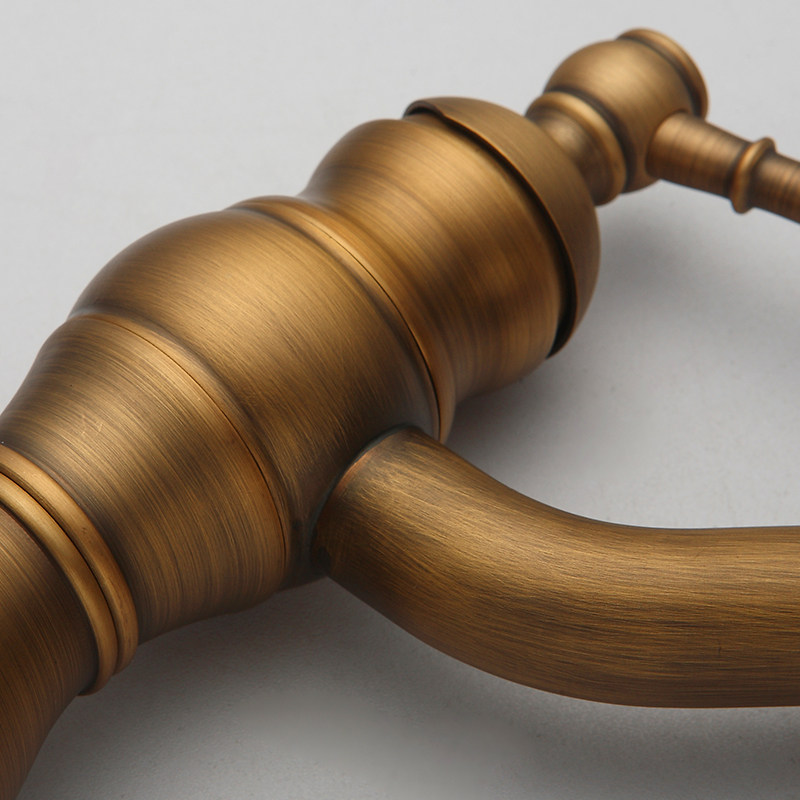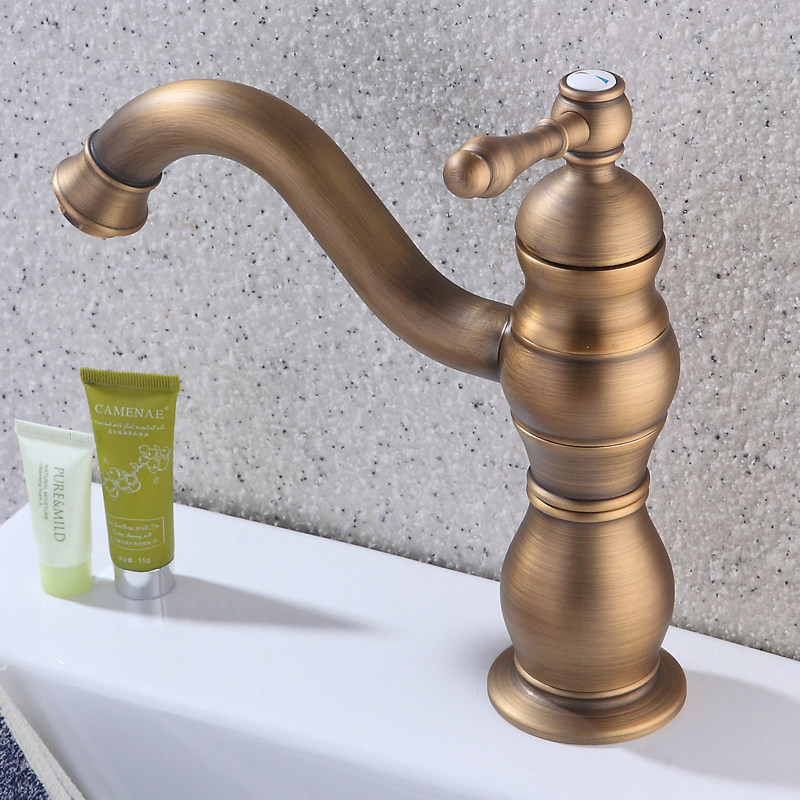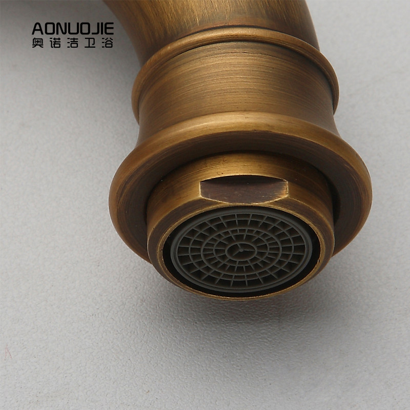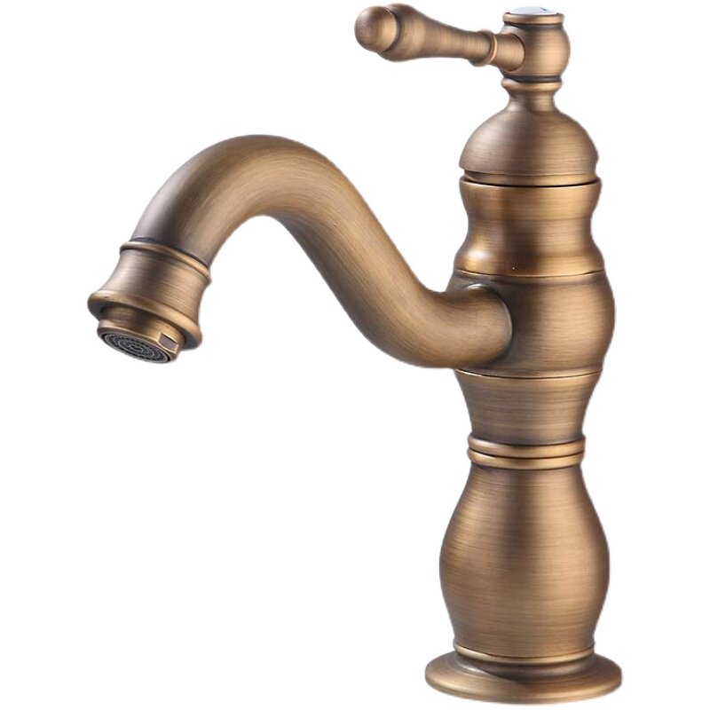 All-copper water tap hot and cold antique basin rotatable shampoo bathroom countertop basin high shower head Chinese single hole