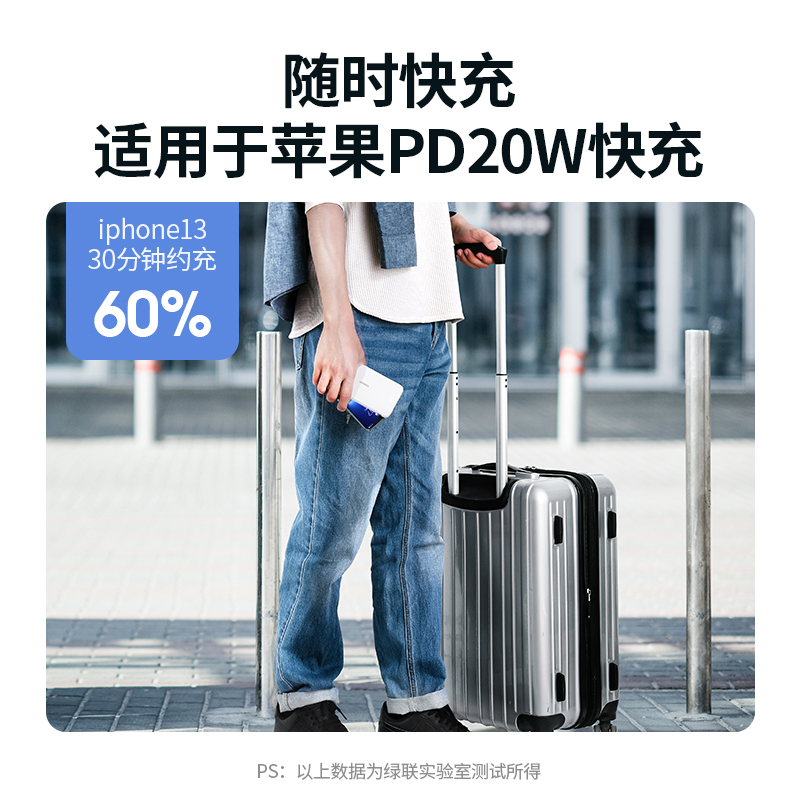Green Union Mobile charging Bring Your Own Line 20000 milliaman PD20W Quick charge for Apple 13iphone12 Huawei 22 5W Xiaomi Phone Large-capacity outdoor action Power supply Number of outlets 2