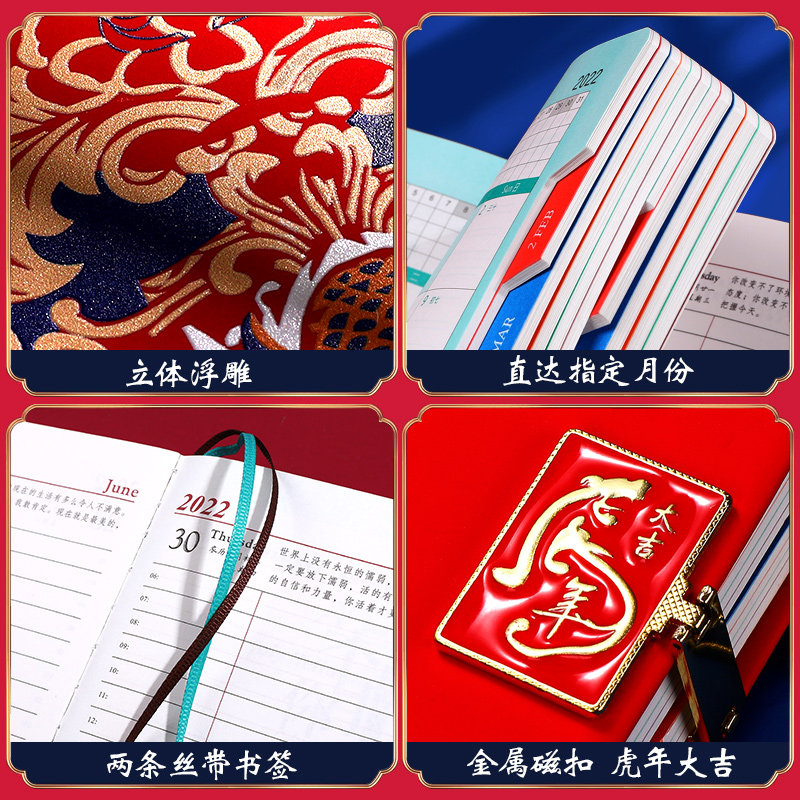 2022 schedule, national trend, Chinese style plan, one-day one-page business suit, gift box, New Year's gift for the Year of the Tiger, gift for teachers, leaders, customers, boyfriends and girlfriends, notebooks, custom printable LOGO