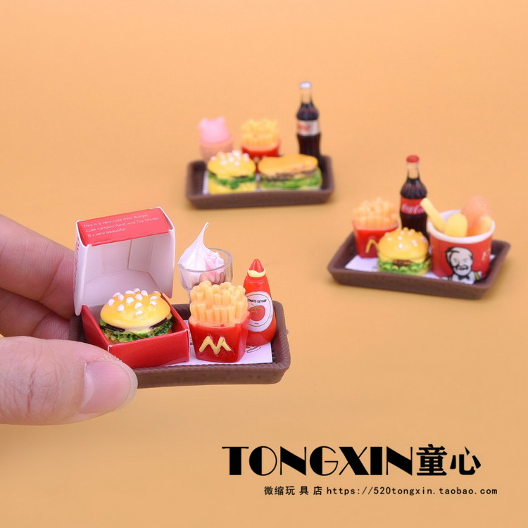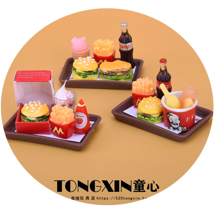 Mini food play dessert doll house decoration hamburger whole family bucket ice cream french fries simulation food pretend house wine toys