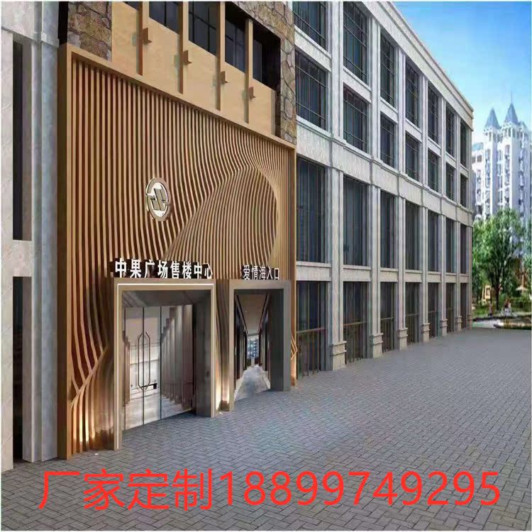 Customized exterior wall indoor partition aluminum square tube aluminum alloy flat tube heat transfer wood grain groove square pass grille aluminum extrusion material