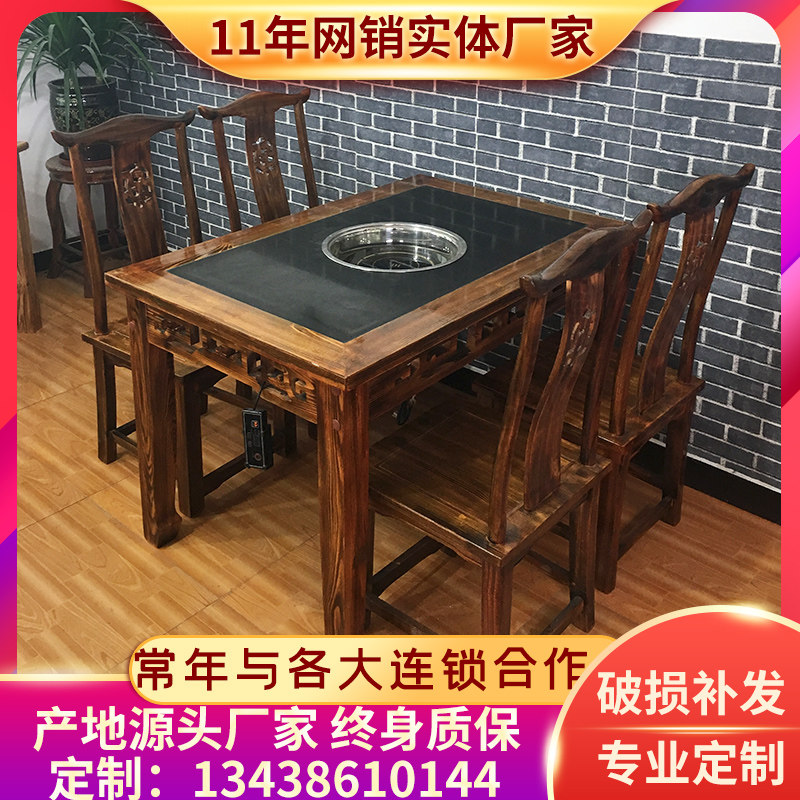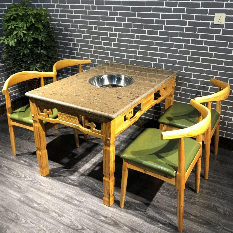Customized carving strings of wood marble hot pot table and chair commercial night-night hot pot table, hot-hot eight-fairy table