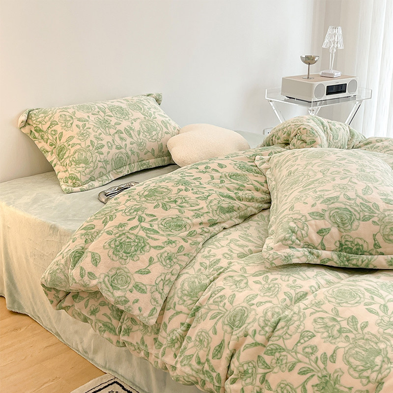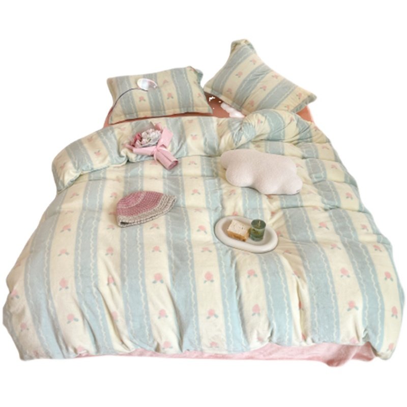 Teenage Girl Hearts Cute Honey Peach Milk Suede Four Pieces Of Intimate Skin Warm Coral Suede Bed 3 Pieces Flannel Velvet Bed Goods