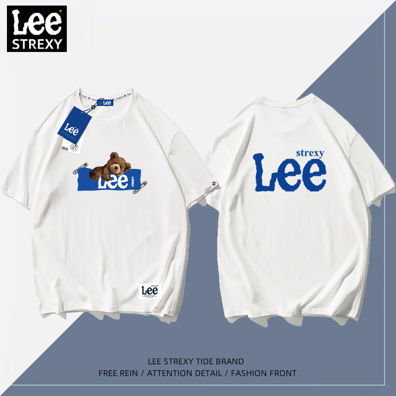 Lee strexy tide brand co-brand bear short sleeve t-shirt men's and women's couples 2022 summer cotton t-shirt
