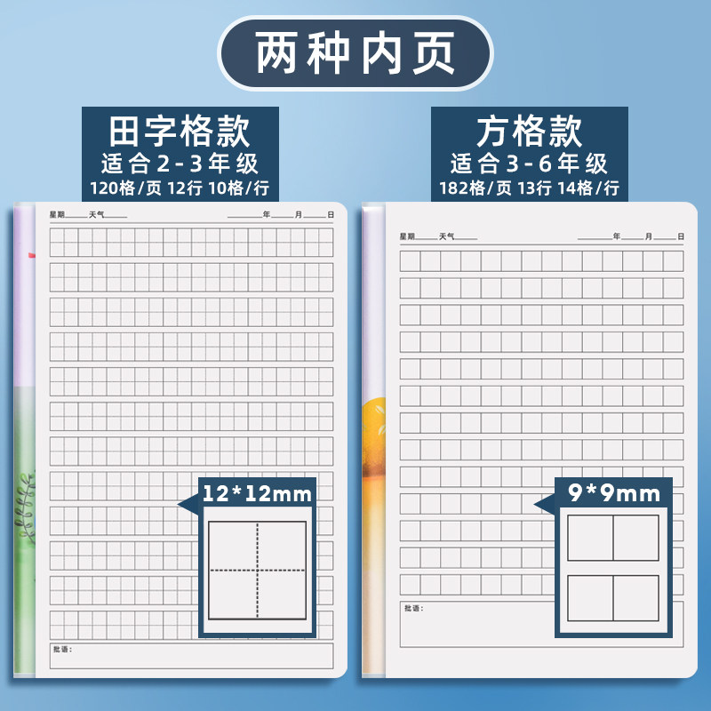 Primary school students' diary first grade second grade third grade boys and girls children field word grid square primary school diary plastic sleeve cute cartoon thickening reading notebook grid for text