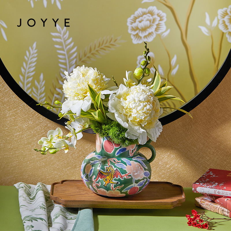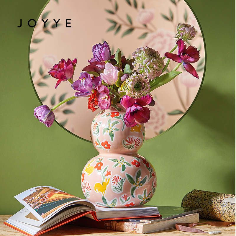 JOYYE Palace Culture Handdrawn Ceramic Flower Room Wide mouth Chinese Flower Vase Living Room Art Flower Settings