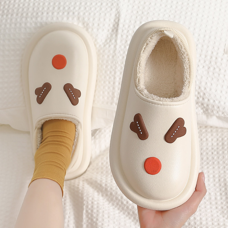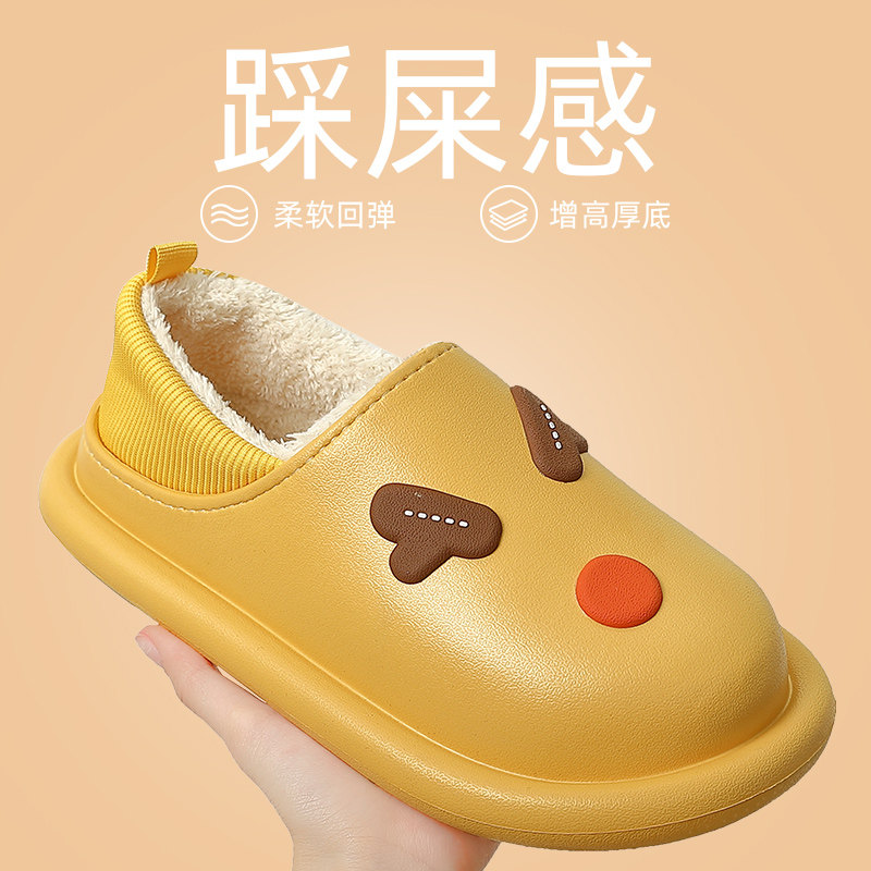 Waterproof cotton slippers for men's winter indoor home with non-slip thick-soled bag with feces-feeling warm cotton shoes for women's winter