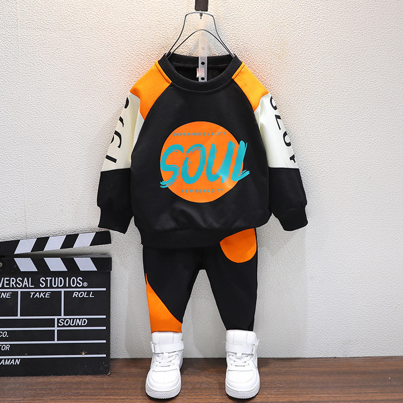 Boy Clothing Autumn Boy Suit 2022 New Foreign Pie Baby Children Autumn Clothes Boy Tide Cool Fried Street Sweatshirt Two Sets