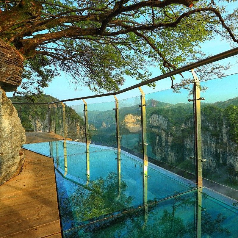 Outdoor online red large unpowered glass water chute outdoor high altitude design children's water Drift ad hoc slide