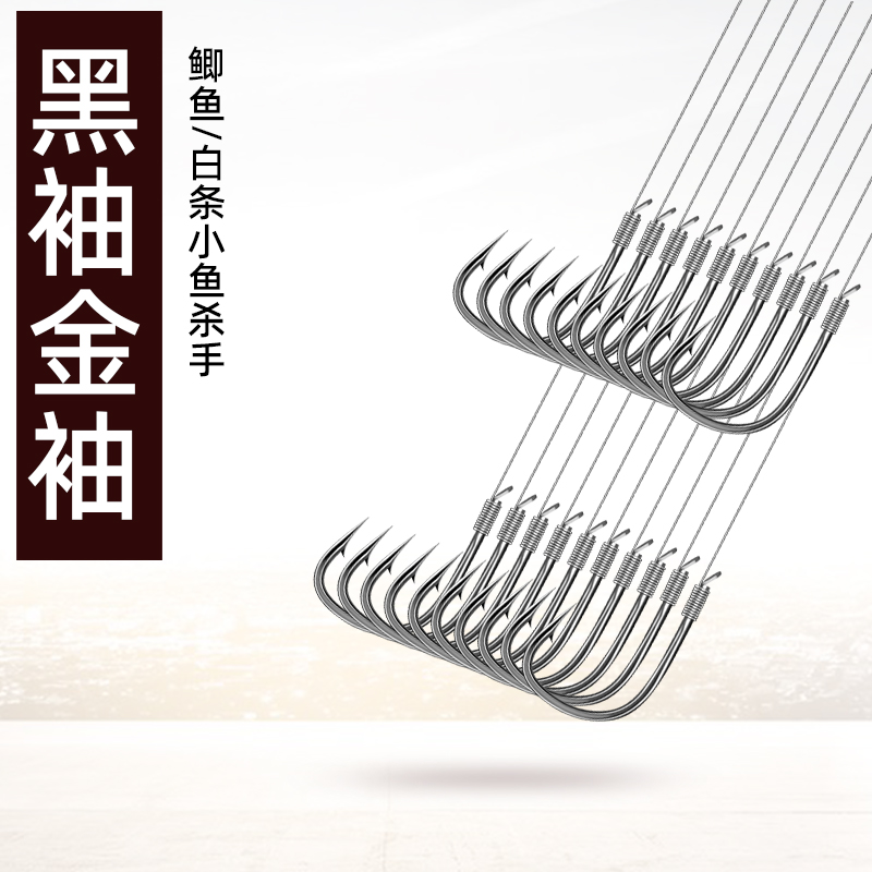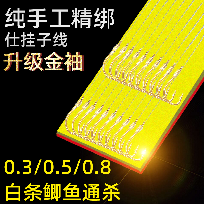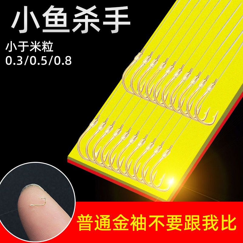 Gold sleeve line double hook set finished sleeve hook crucian carp hook 0 30 50 8 micro object number white bar wheat ear small fish hook