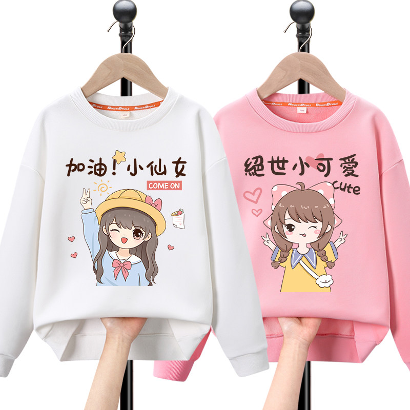 Girls' thick T-shirt spring and autumn models 2022 new middle-aged children's tops Western style fashionable children's clothes girls clothes children's autumn clothes