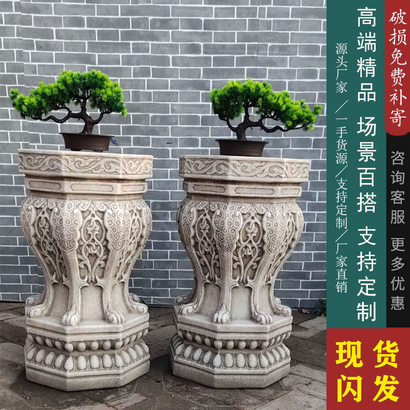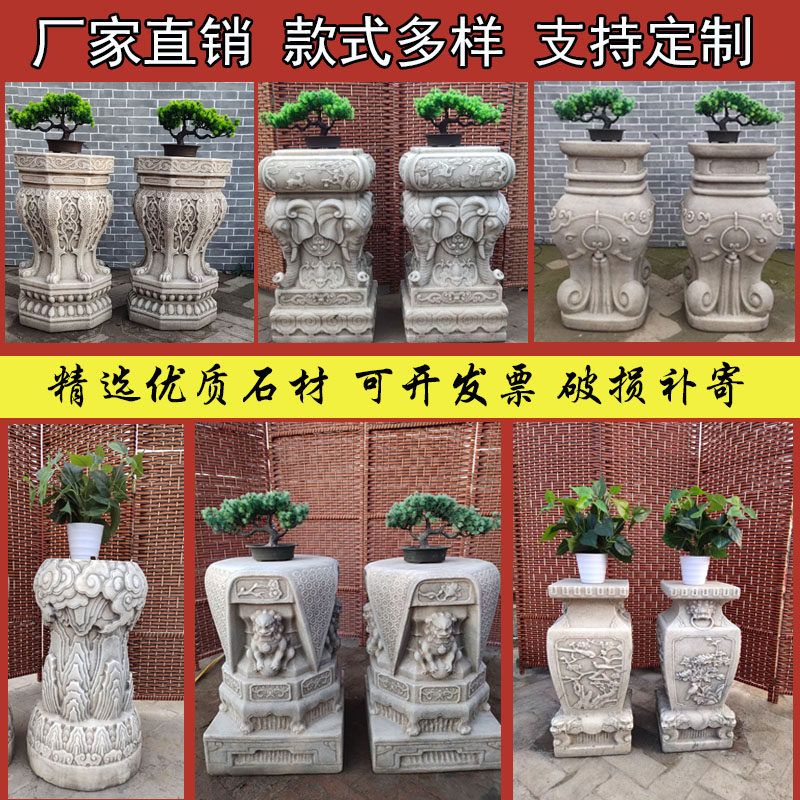 Hanbai jade natural column pier stone flower shelf base stone carved courtyard pendulum piece imitation ancient stone pier Chinese style bonsai flower table