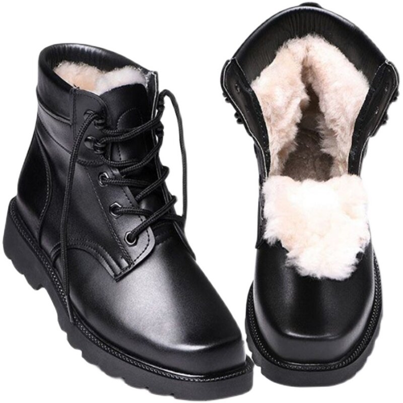 Martin boots men's wool winter plus velvet warm leather boots leather short boots snow boots steel toe large cotton shoes
