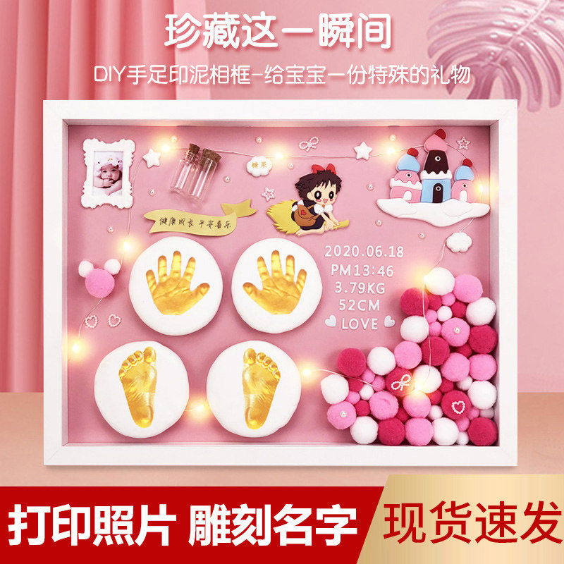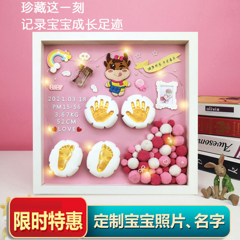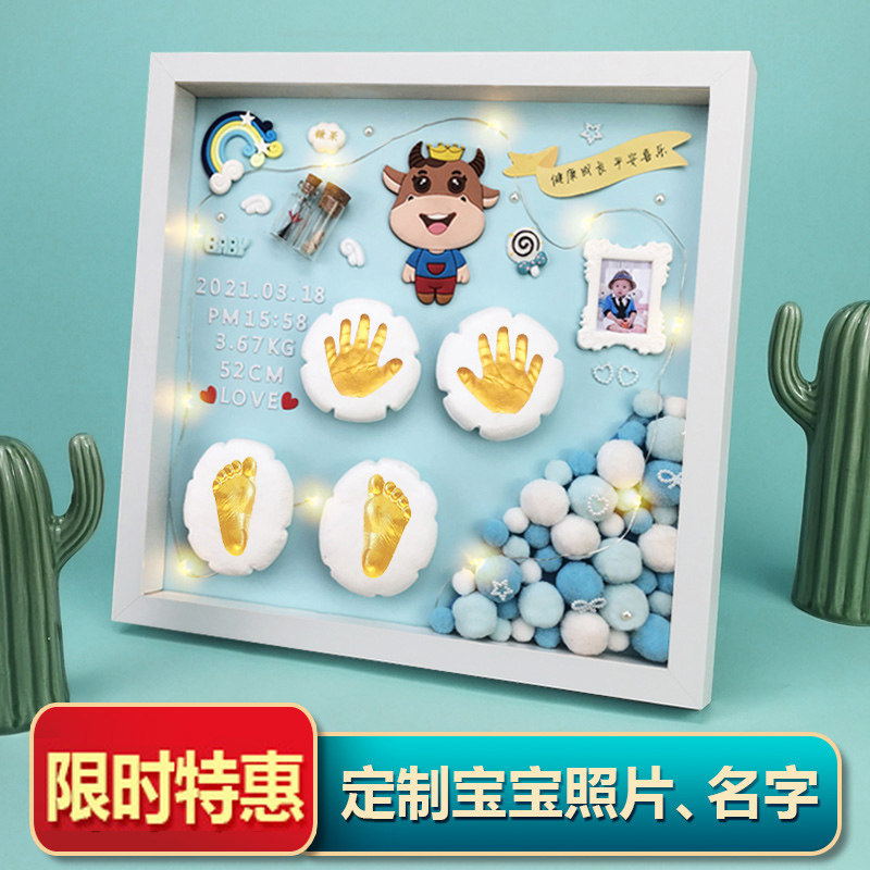 Fragrant color full moon hand and footprint baby hand and foot print mud baby one-year-old lanugo souvenir making 100-day creative gift