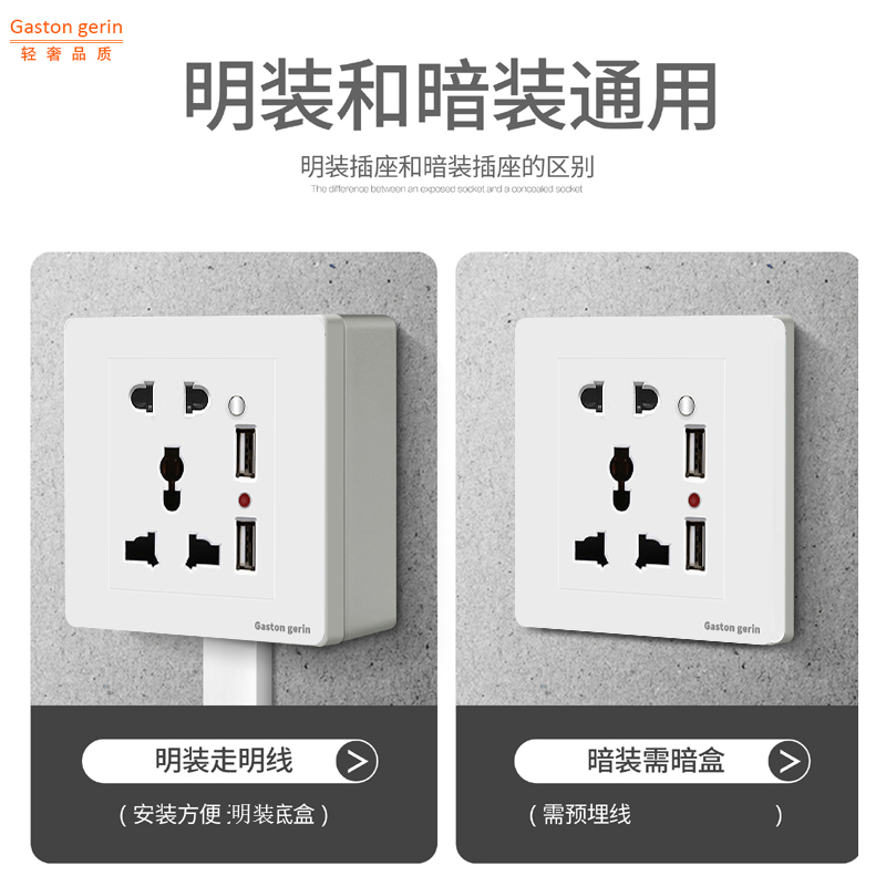 Type 86 concealed multi-function five-hole USB socket with switch Hong Kong-style 5-hole two-three-plug usb charging socket panel
