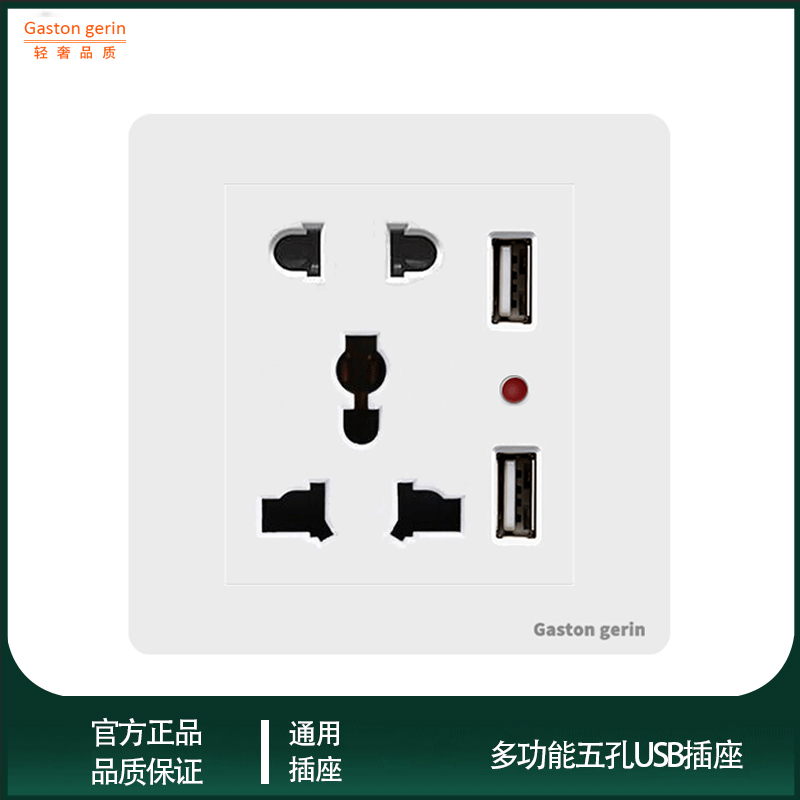 White 5-hole USB with switch Gold 5-hole USB with switch Black 5-hole USB with switch White 5-hole USB