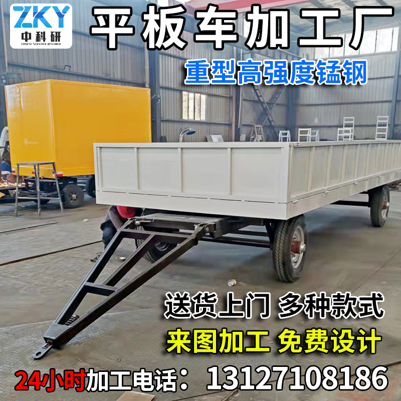 Stacker towing heavy-duty flatbed trolley trailer trailer factory heavy-duty large-tonnage four-wheel steering transport vehicle storage