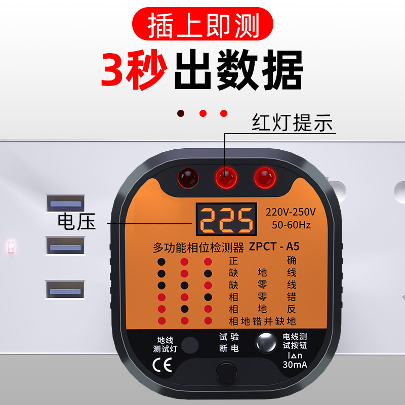 Phase detector multi-function socket test power supply polarity electroscope leakage tester ground wire test plug