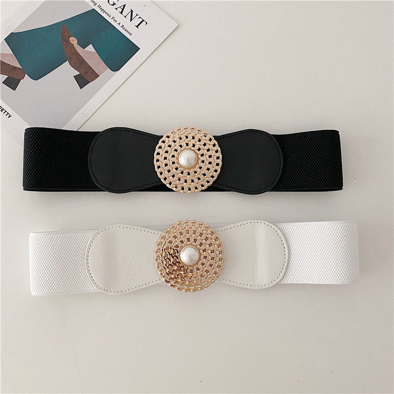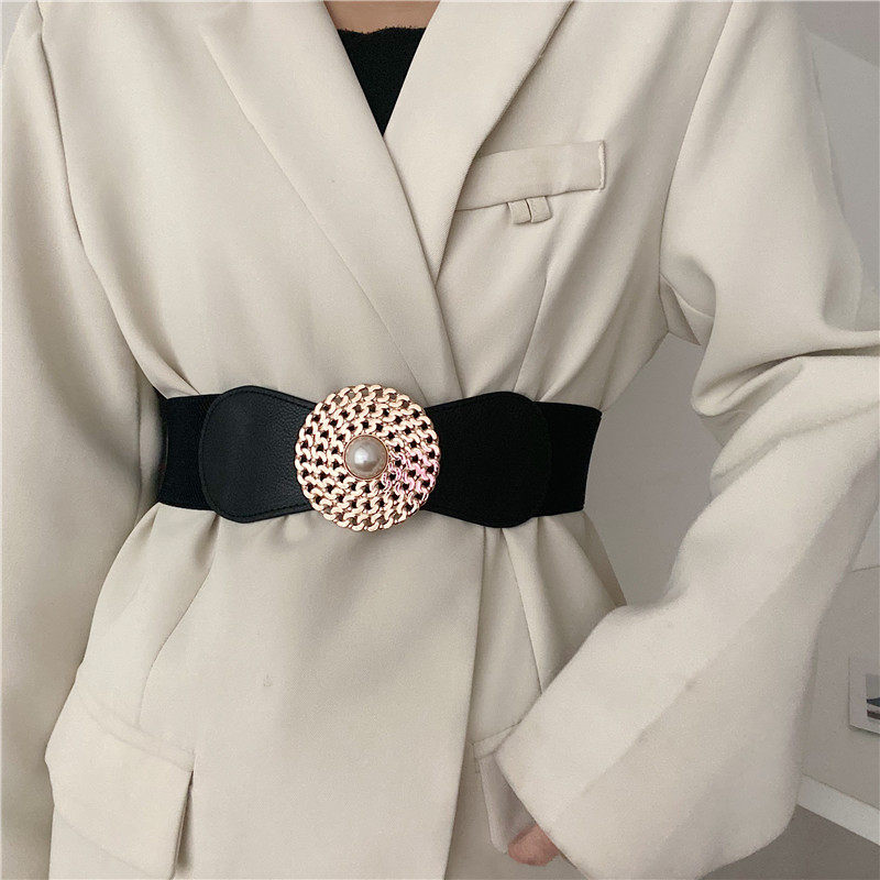 Pearl elastic belt women's decoration with suit coat skirt ins style corset slim fashion all-match wide waistband
