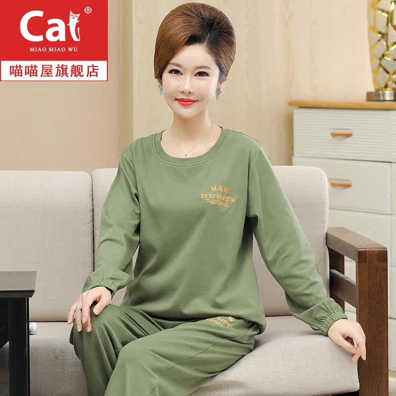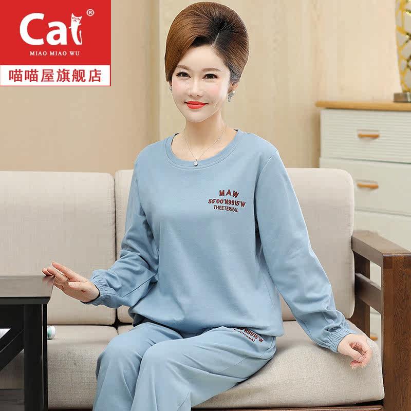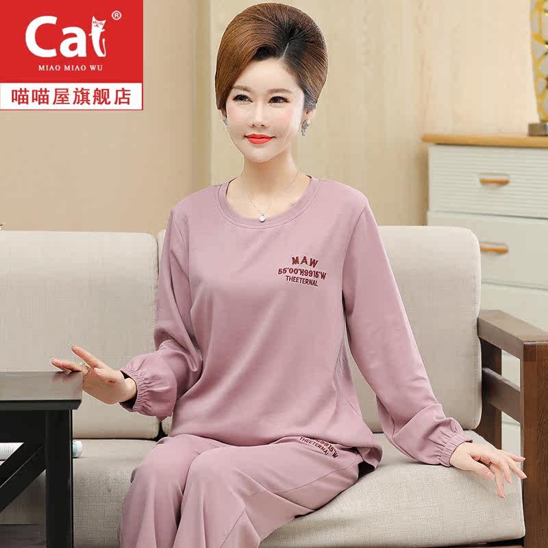 Spring and autumn cotton long-sleeved two-piece ladies pajamas can go out middle-aged mother casual loose cotton home clothes