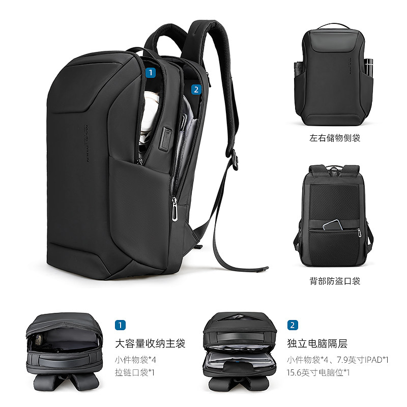 Zippered pockets Mobile phone pockets ID slots Interlayer zipper pockets Computer pockets Main pockets