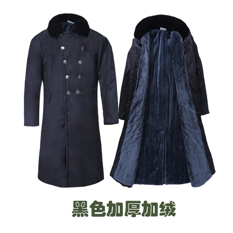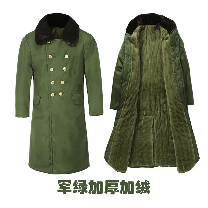 Military cotton cold storage men's winter thickened long coat work black green plus velvet padded jacket cold-proof clothing labor security cotton clothing
