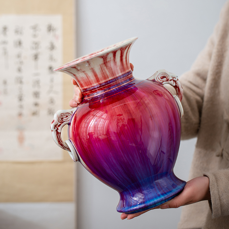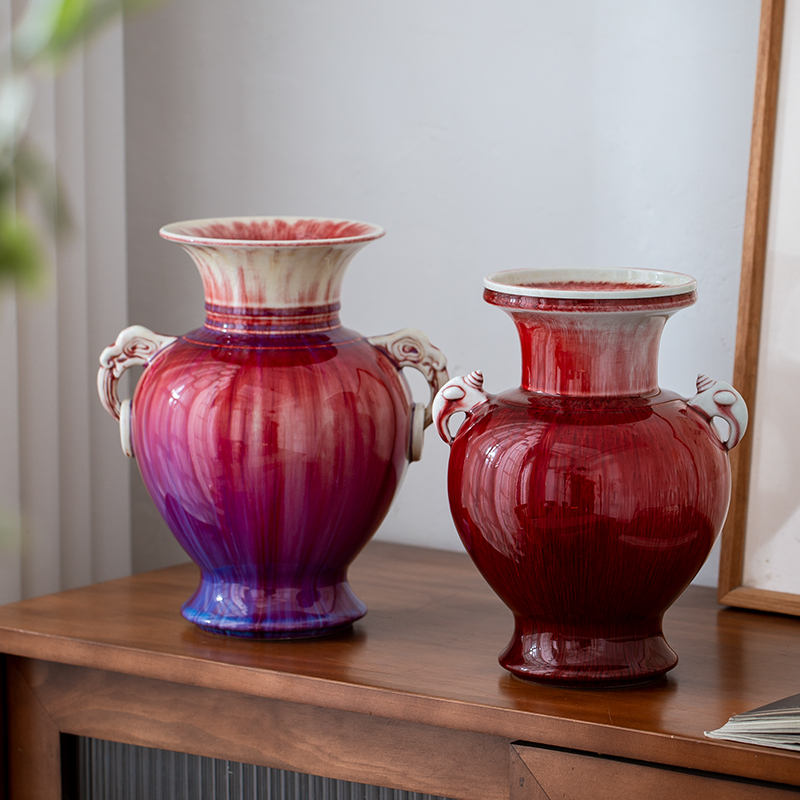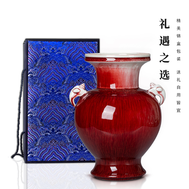 Handmade original mine Jingdezhen High-end Vase Swing in the living room Flower Arrangement Groom Red Porcelain Pomegranate Revered Boutique Vases Red