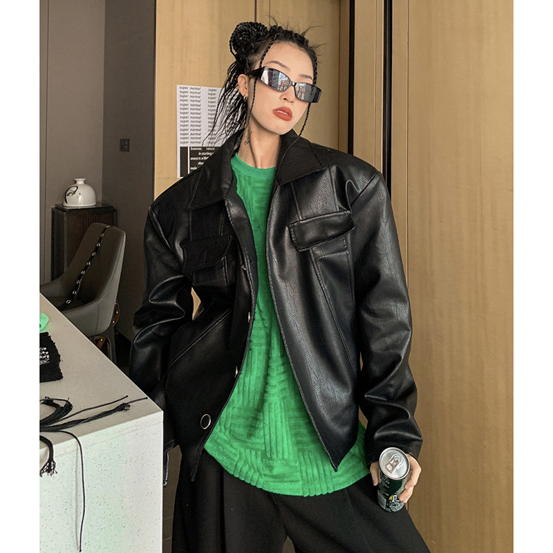 He Yimo leather jacket women's 2022 spring new high-end niche locomotive PU leather jacket top ins