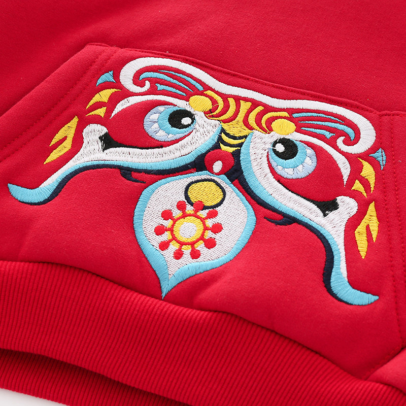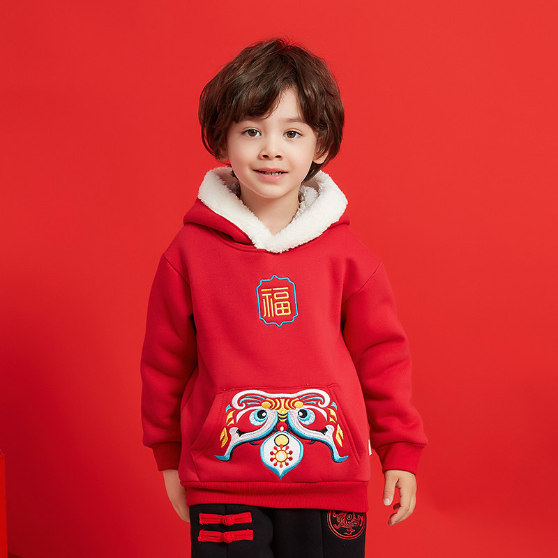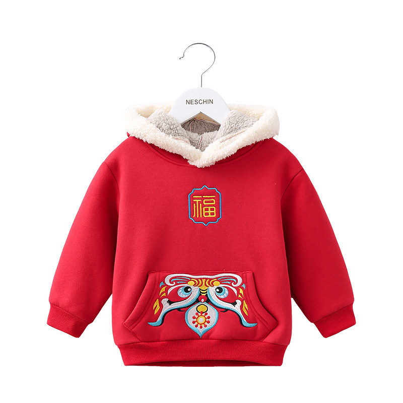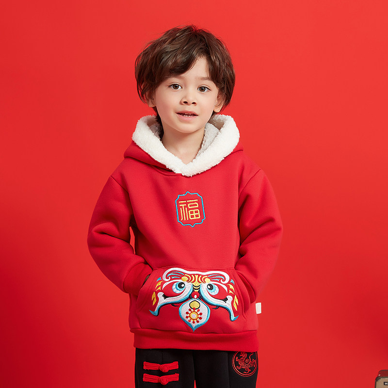 Boys' red sweater children's fleece and thickening 2021 winter clothes, new year's clothes, warm clothes, new baby's New Year's tops