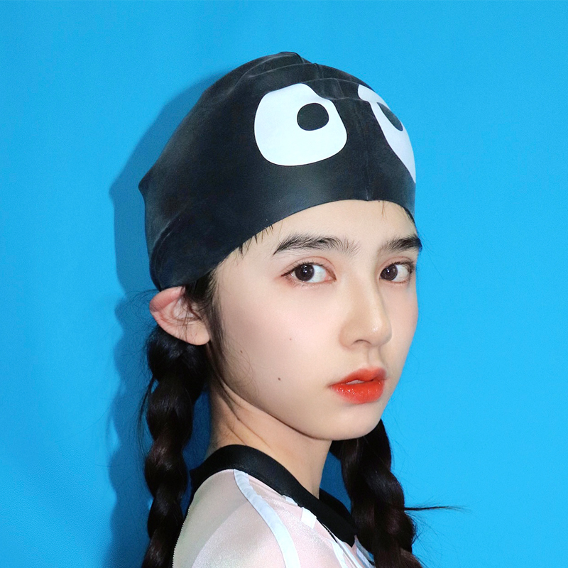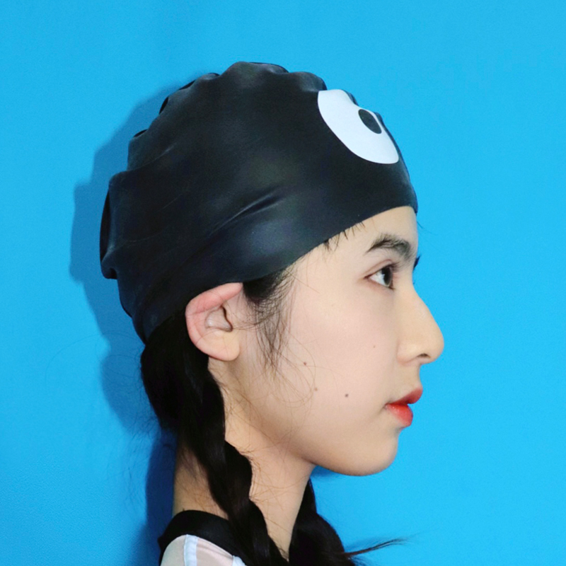 Eye silicone swimming cap adult male and female without heads waterproof hair protection ear professional large head swimming cap