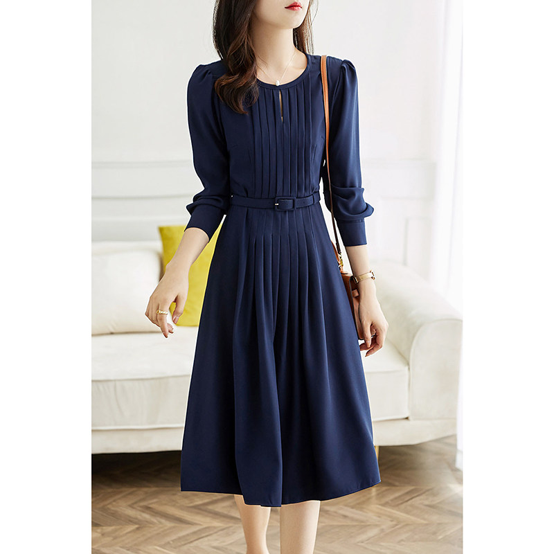 Mularsa Method Tea Hysteria 100 Pleats Round Collar Dress Women 2022 Spring New Cashew's slim pure color a dress