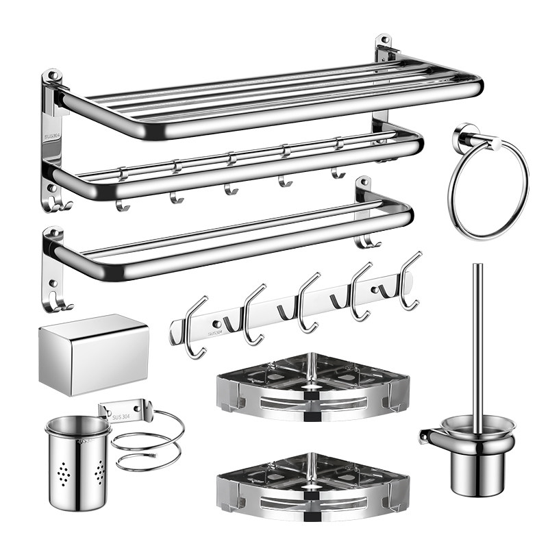 Van Ice Wool Towel Rack 304 Stainless Steel Free Punching Makeup Room Shelve Wall-mounted Bathroom Hardware Pendant Suit