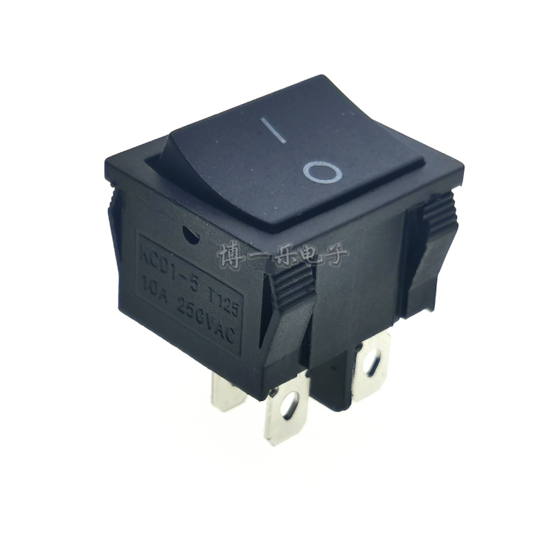 KCD5 rocker switch 21 *24MM 4 feet 2 gear black cover clamping 4P2T rocker power button boat-shaped switch