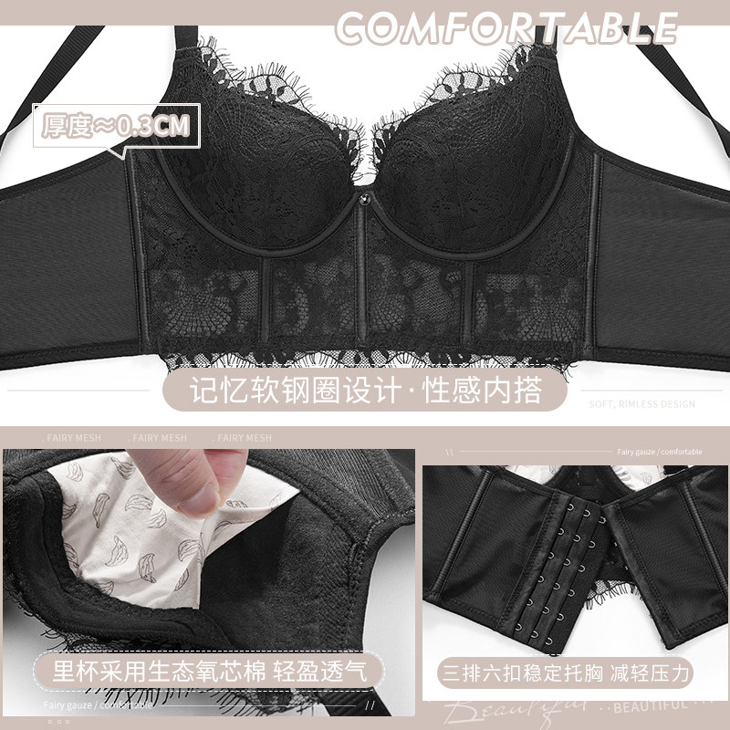 Legal lace lingerie women's small breasts gather 2021 new burst bouquet waist collection Breast Anti Drooping Bra Suit-Taobao
