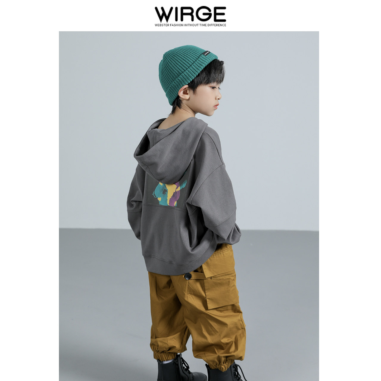 Vets Boy Lian Hat Sportswear Children Blouse Foreign Pie Long Sleeve Big Boy 2022 New Spring Dress Baby Boy Bottling Tide