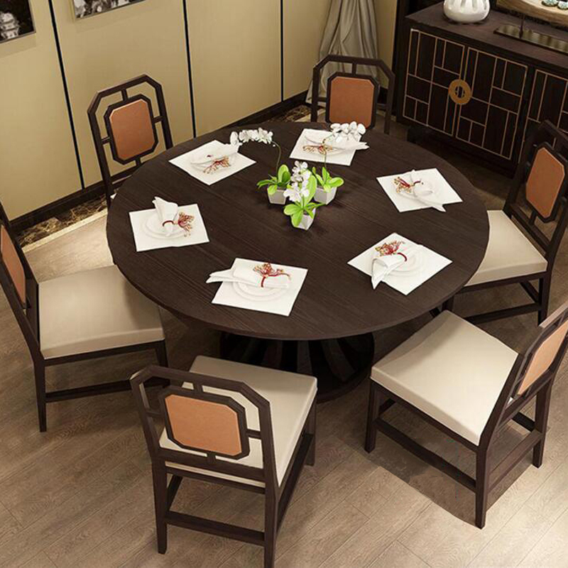New Chinese dining table and chair combination hotel villa model room modern Chinese minimalist solid wood round table dining room furniture