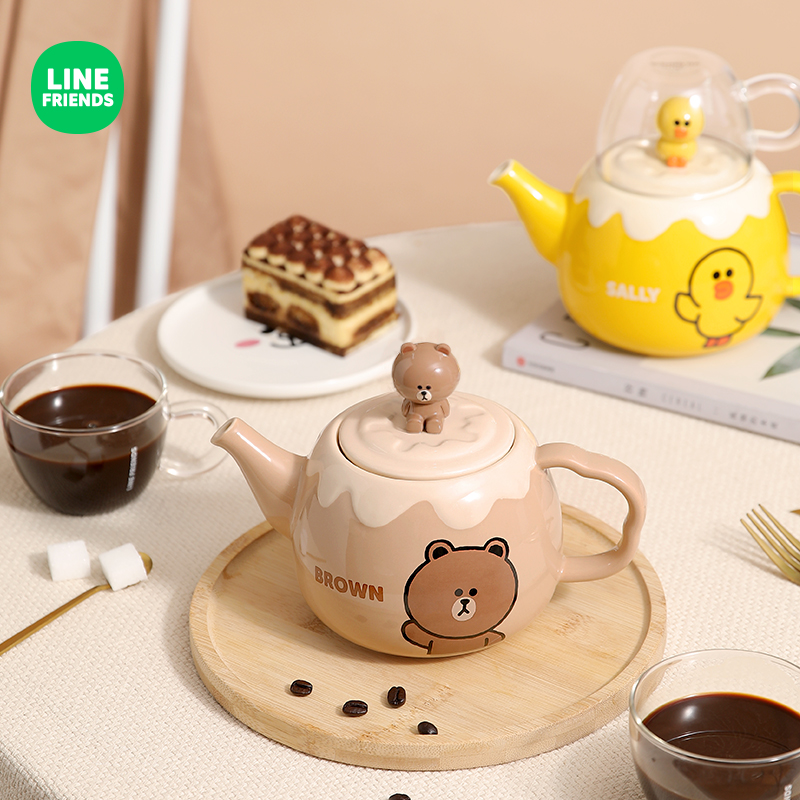 LINE Brown Bear Ceramic Coffee Maker Cartoon High Face Value Teapot Cute And Delicate Coffee Cup Afternoon Tea Set Gift Box