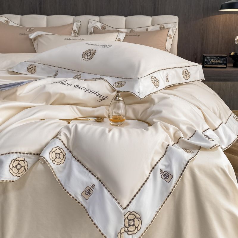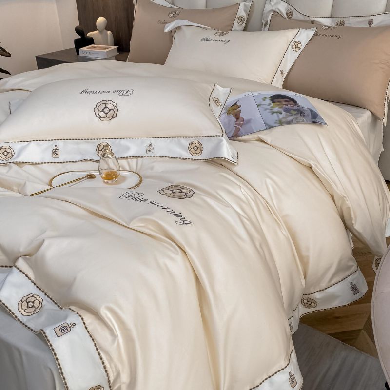 Legal Light Extravaganza 100 Four pieces of four pieces All cotton pure cotton Advanced senses minimalist Flower Embroidery Quilt Cover Bed Linen