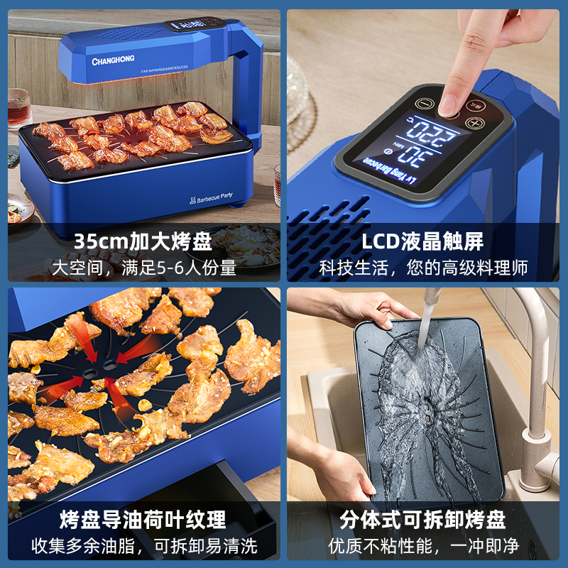 Long Iridescent Electric Oven Home Infrared Electric Grill Pan Smoke-free Grilled Meat Machine Han Style No Stick Pan Roast Pan Electric Oven