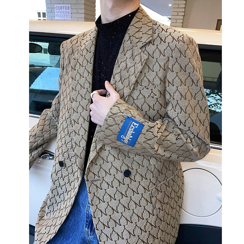 (Love to wear help) 2022 Spring sum ins net red printed suit jacket male Korean teas loose fried street textures Western-style clothes