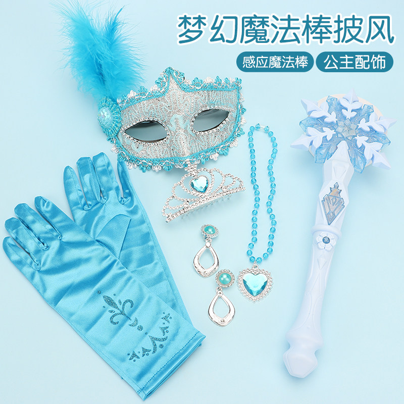 蓝色-雪花魔法棒蓝色魔法棒 4件套蓝色魔法棒 4件套 眼罩蓝色魔法棒 4件套 披风蓝色魔法棒 4件套 眼罩 披风蓝色雪花