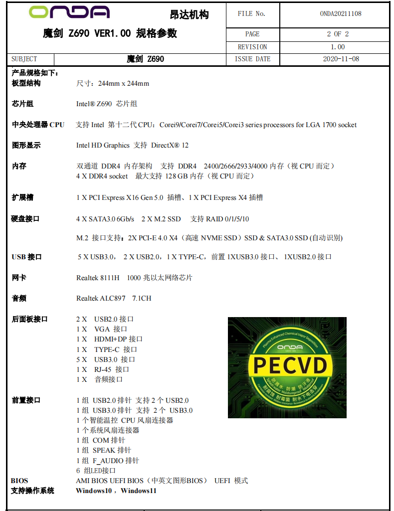ONDA ONDA Magic sword Z690 desktop computer motherboard supports 12 generation cpuLGA1700 dual channel memory